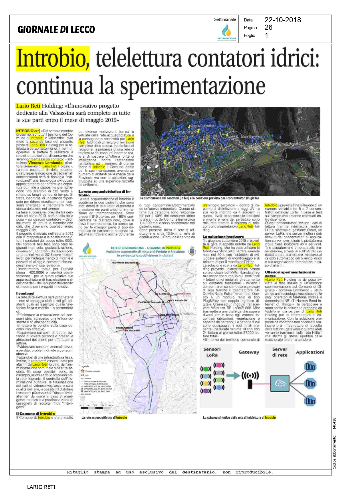Dal primo dicembre 2018 su tutto il territorio del Comune di Introbio, in Valsassina, ha dato inizio alla seconda fase del progetto pilota per la telelettura dei contatori idrici.